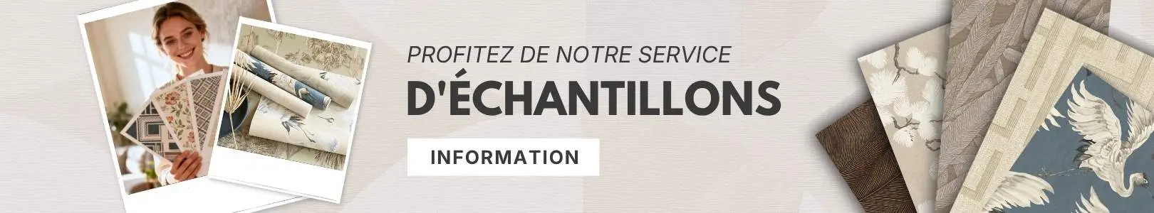 Représentation des couleurs : Les couleurs affichées sur nos photos produits peuvent légèrement varier selon les conditions d’éclairage et les réglages d’écran. De légères variations liées à la production sont également possibles. Certaines déterminations de couleur peuvent être effectuées à l’aide de l’intelligence artificielle. Nous vous recommandons de commander un échantillon afin de vérifier la teinte et la texture réelles du papier peint.